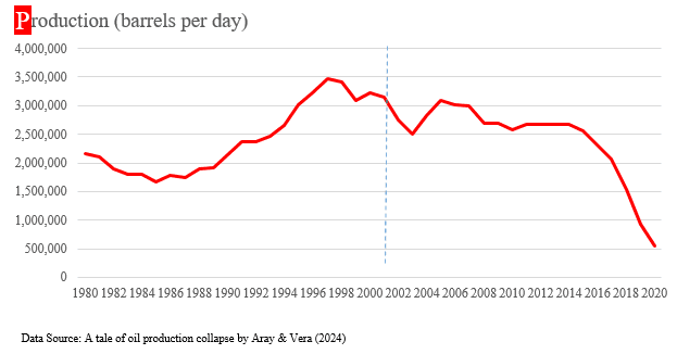 Venezuela owns the largest heavy crude oil reserves. In 1976, during the nationalization of oil, Venezuela created a strong relationship with the US. The US refining companies invested $100 billion from the 1990s to 2010 in oil exploration. In 1999, Hugo Chavez became the president of Venezuela and implemented very harsh restrictions on oil companies, which negatively affected the sentiments of the US government. The production has reduced gradually from 3.2 million barrels per day in 2000 to 0.5 million in 2020 due to underinvestment and mismanagement. During the same period, Venezuelan exports to the US declined from 1.3 million barrels per day to 510.000 in 2018.